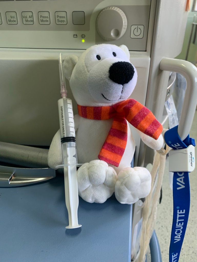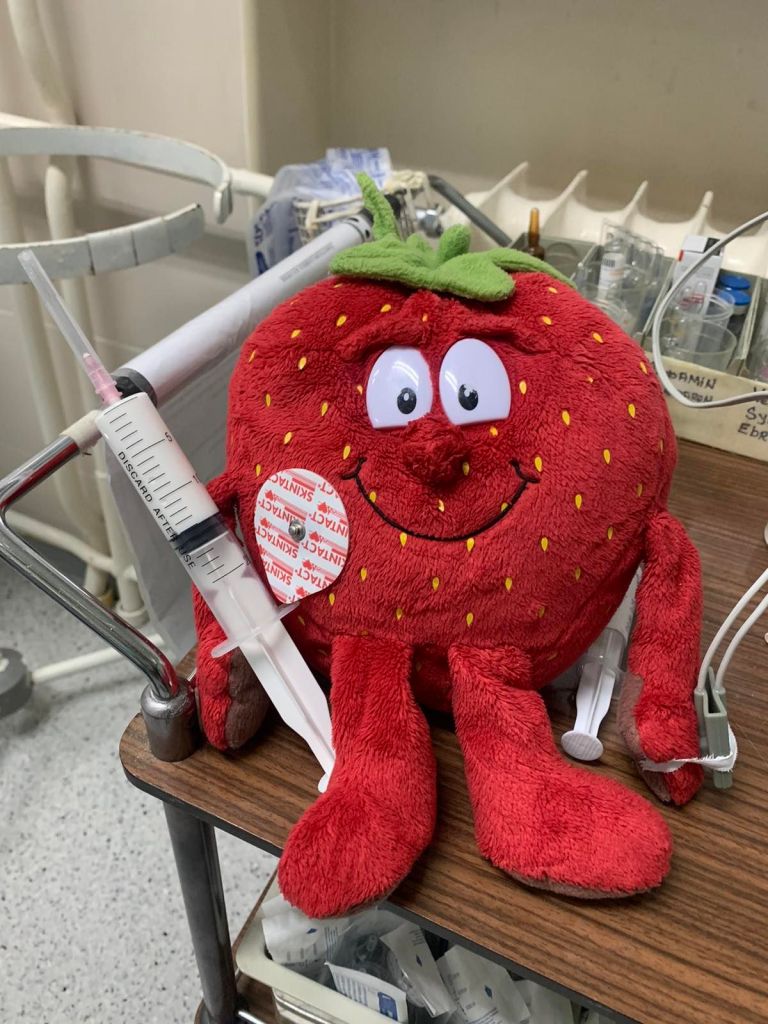 Na slikama je upravo omanji izbor tih igračaka sa njenog prethodnog dežurstva…i onda će ta igračka kada sutra uđete u tu uvek neprijatno i preterano osvetljenu sobu biti najpre nakačena na ekg…i dobiće injekciju…isto kao i vi…malo kasnije…